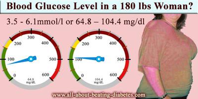 QUESTION: What should the blood glucose level be of a 180 lbs. woman?