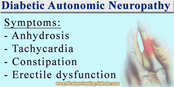 This system comprises organs like heart, intestines, urinary tract, sweat glands. Click on Diabetic autonomic neuropathy to see in details the affected organs, and related symptoms.
